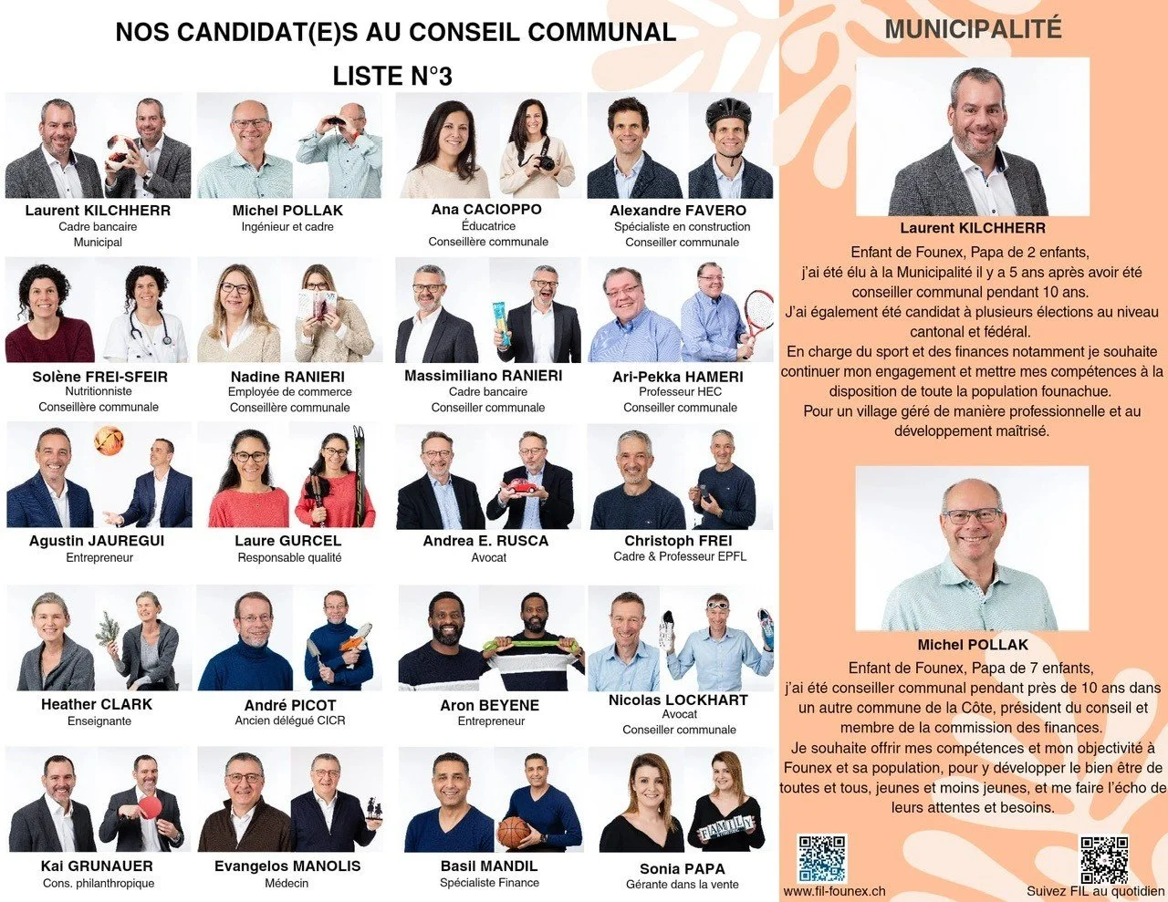 FIL représente la diversité de notre commune, qu’elle soit de genre, d’origine, de nationalité ou de culture. Cette richesse est une force : elle reflète la réalité de Founex aujourd’hui et constitue un véritable choix de représentation pour l’avenir de notre si cher village.